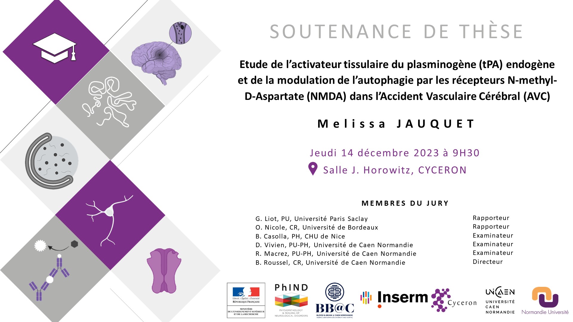 14/12/2023 09:30 Thèse soutenue par Mélissa JAUQUET (PhIND UMR-S 1237)